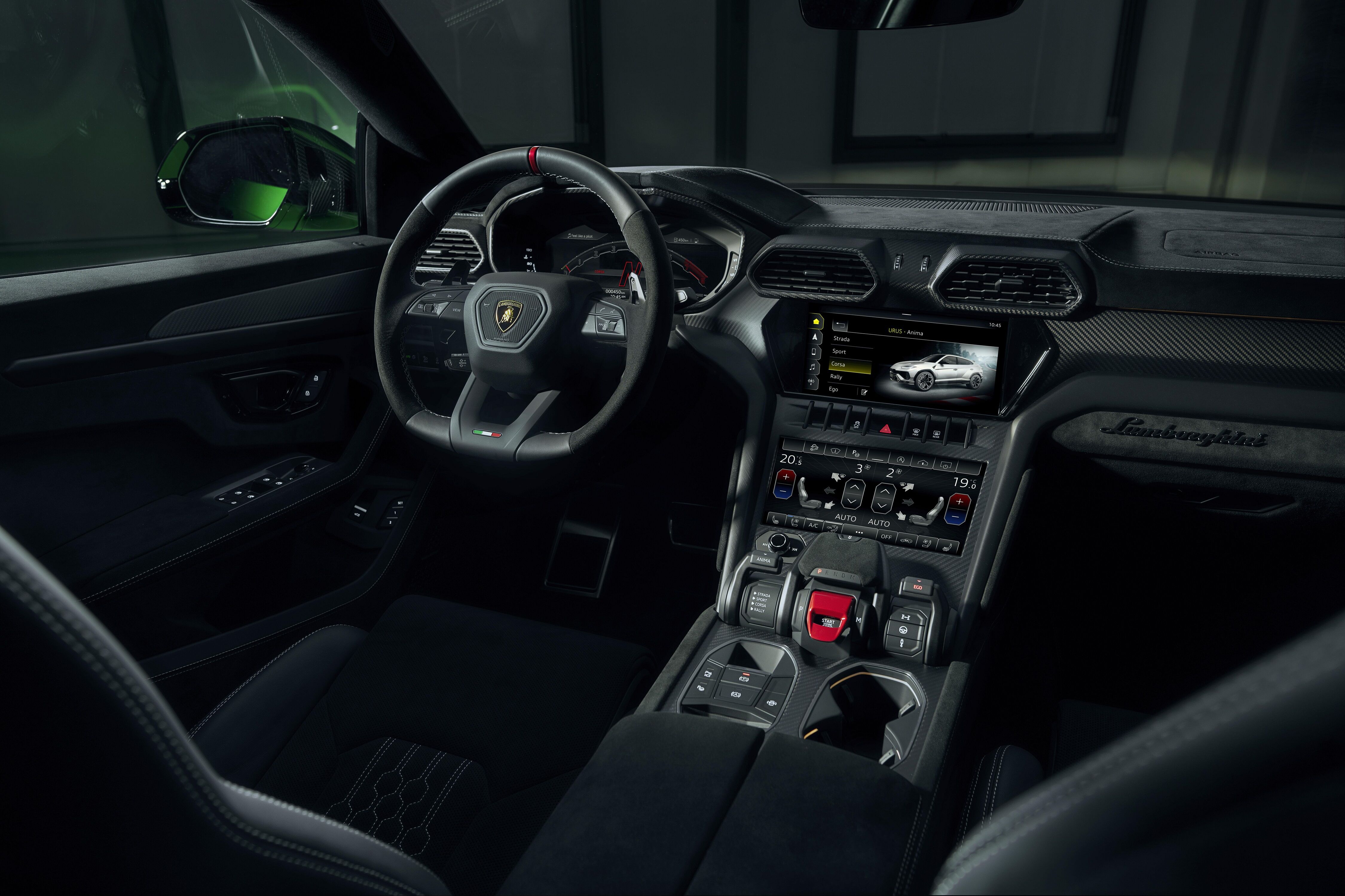 The interior of Urus Performante is made for its driver, enhanced by the use of innovative and lightweight materials such as Alcantara and carbon fiber. With these, dark tones, contrast stitching and exclusive Performante logos add unique details to express the car’s sporting character. Refined, contemporary and ergonomically efficient, the interior of Urus Performante is designed to make the driver “feel like a pilot.”